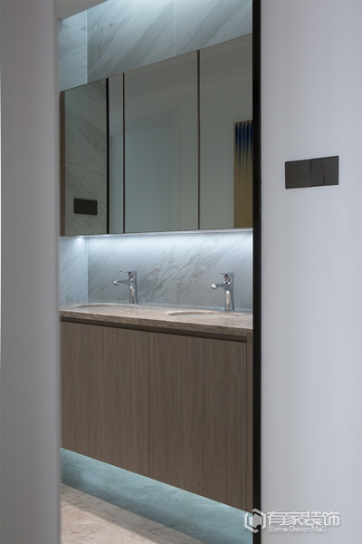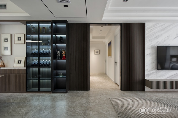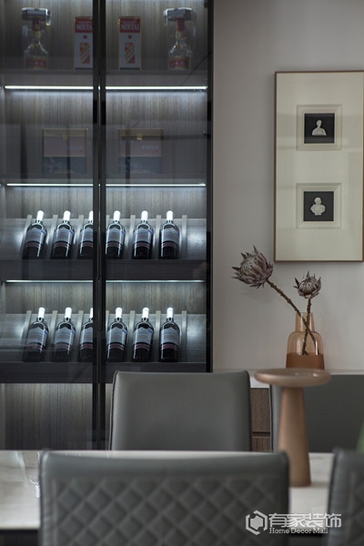 空间大面积的灰白搭配,呈现出宁静、安稳的氛围。再有暖色灯光、木质元素的运用,又给美宅新添一分难得的温馨!