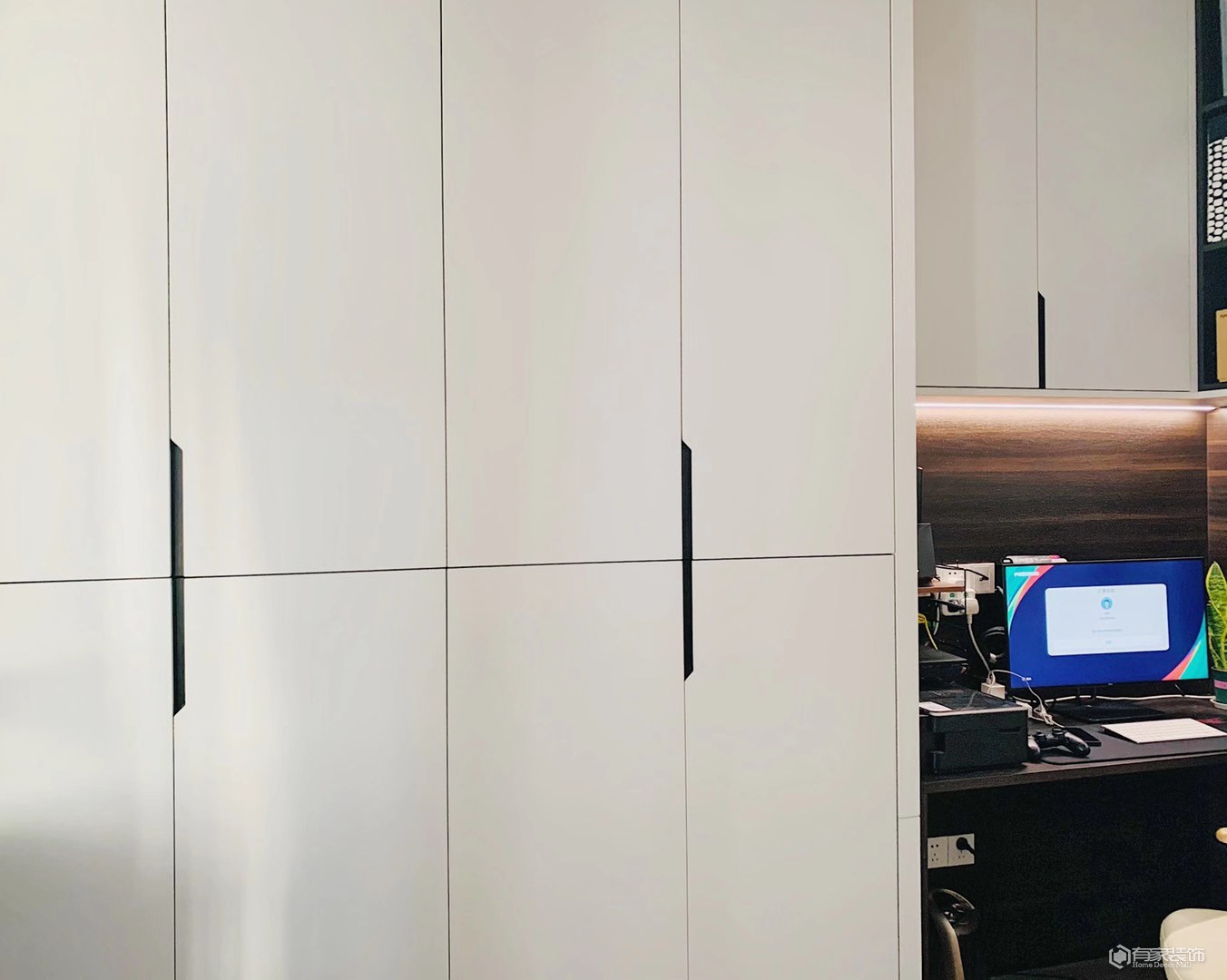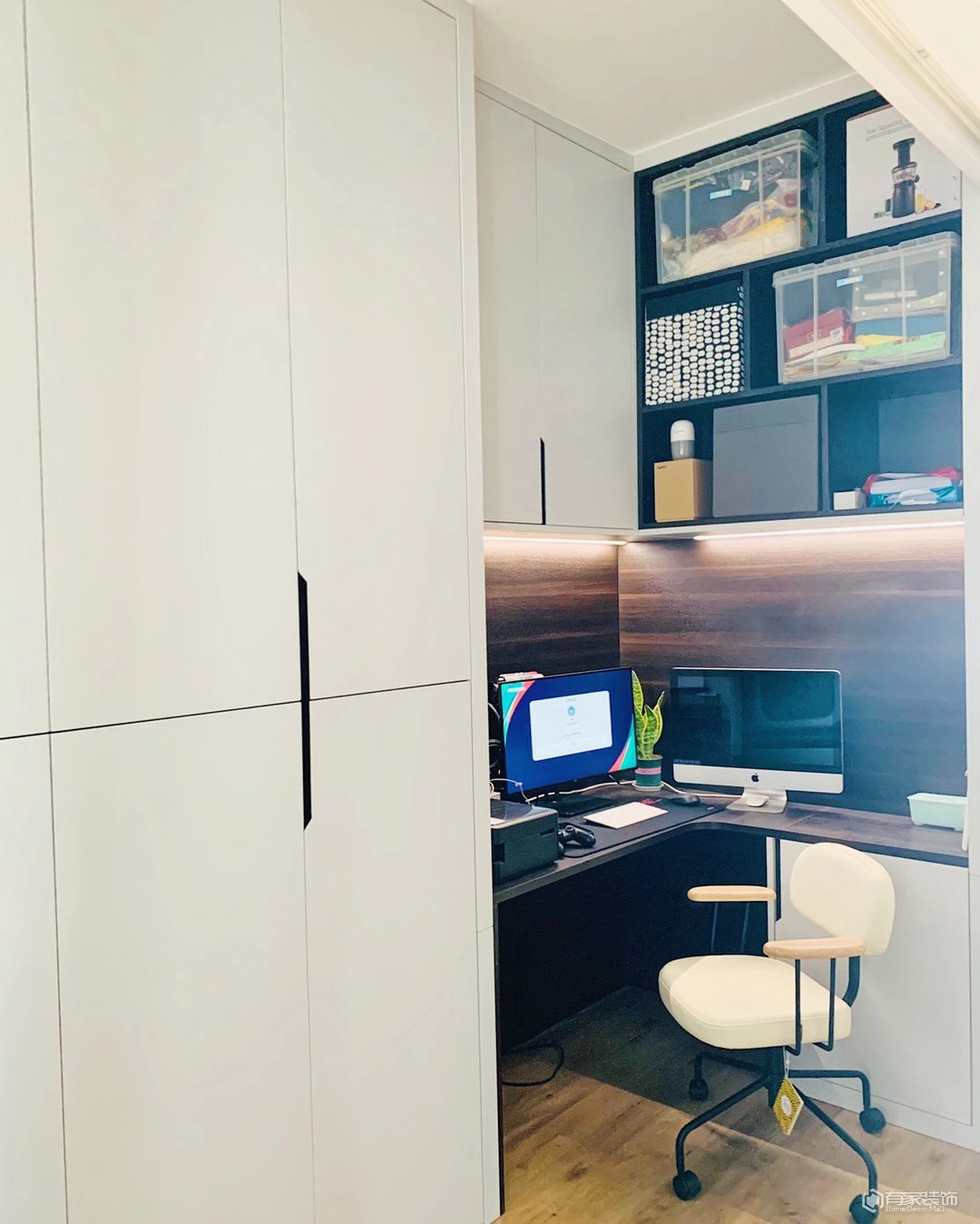 其他一些装修细节,我在这里简单的分享一下。书房的壁柜用以折门替代,让光线更流畅,同时兼收空间的区隔与使用弹性。原来封闭的空间打通后,设计了壁柜收纳满足我的收藏爱好。未来,这里可以是书房,也可以是我家新生儿的游戏空间。