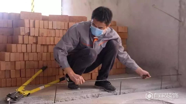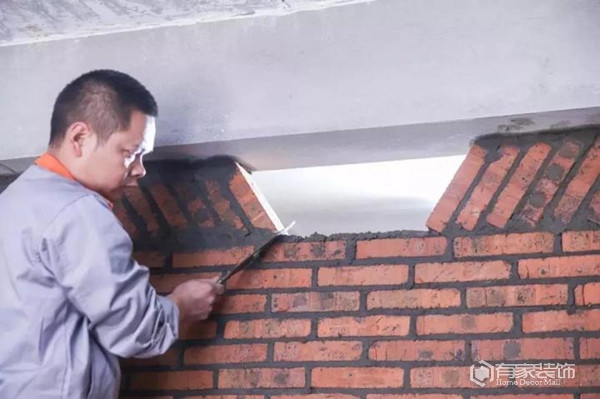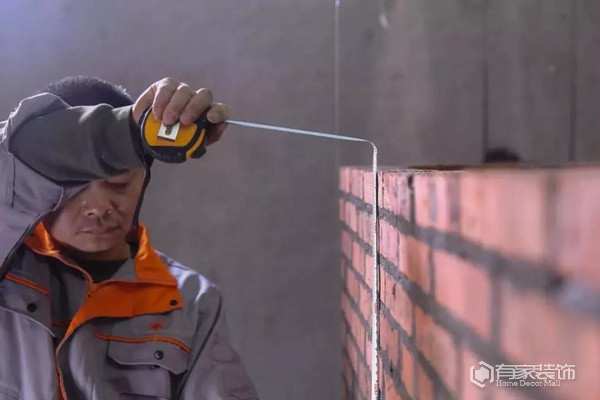 开工后先是进行主体拆改,这个很快,没几天就搞定了。在之后,砌墙就开始了。说起砌墙,我当真是非常佩服师傅。砌出来的墙体,看上去就好像是3D建模出来一样的标准。有家装饰的砌墙很讲究,分三次砌好一堵墙,据说这样子对于稳固性方面有大大的好处。前面的防水地梁,他们也是使用专用的木质模板,浇筑前植入钢筋。浇筑开始后,使用震动棒对模版中的混凝土进行震捣,确保梁体中没有气泡。