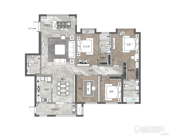 先说基本情况,坐标福州金茂府,房子的建筑面积差不多就是169平,4室2厅3卫,布局如下图: