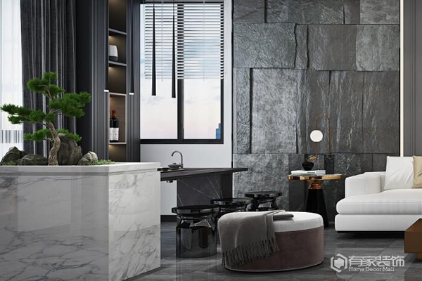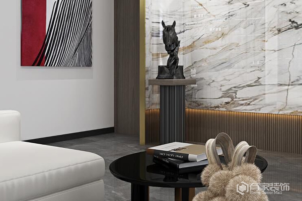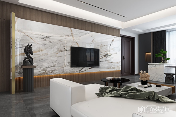 我家的客厅,打了一堵区别于普通的电视背景墙,生活的仪式感正如同画卷般展开。玫瑰金与石头之间的碰撞,弧度尽显奢华魅力,正好与之背后的卫生间隔开,隐形门的设计,不仅提高了设计质感,也让隔音效果也发挥出了它的实用性。