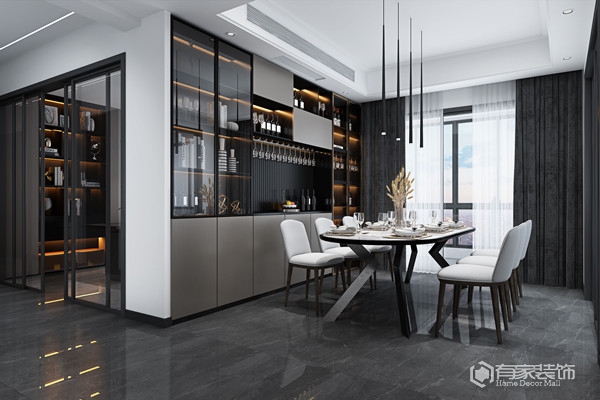 比起客厅,餐厅或许更能代表「一个家的温度」。试想工作下班回家,有什么会比和家人围桌而坐吃饭聊天更治愈的事呢?它不仅是你的能量补充站,更是家人之间的生活情感沟通所。所以对于餐厅的设计,福州装修公司余玲娇设计师都毫不怠慢。