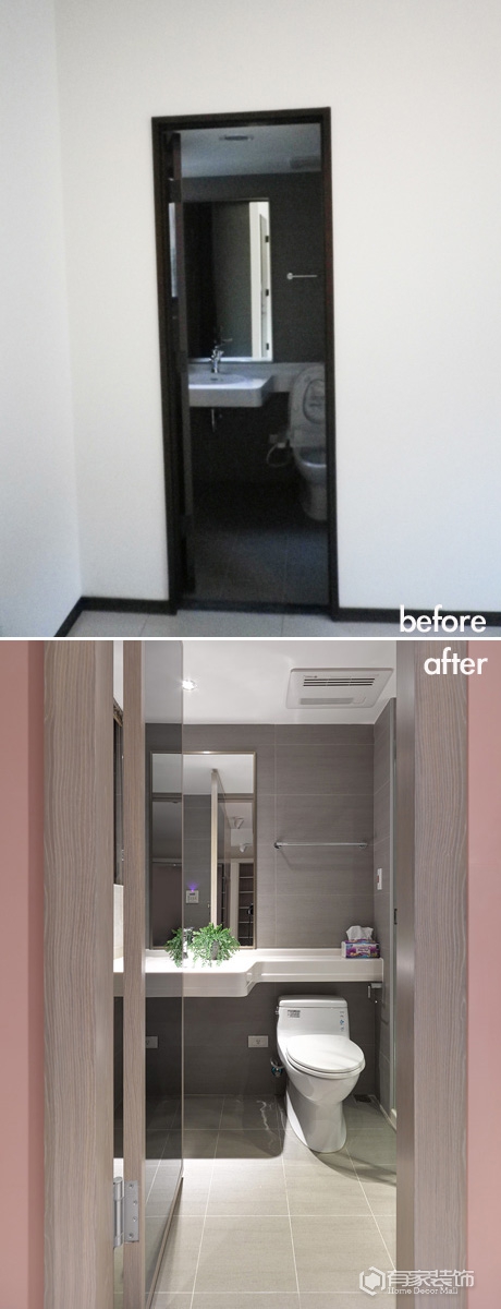 餐厅与厨房以及小吧台,整合成一个完整的互动场域。这里是我很喜欢的一个待客空间。一转身随即看到客厅以及可以走出阳台远眺,紧接着就是以推拉门相隔的睡房、主卧卫浴。公私领域楚河汉界,一道推拉门瞬间将门化于无形,堪称绝妙的隐形术。
