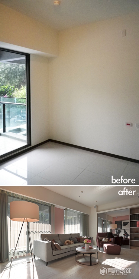 设计师将原本属于睡房的阳台收编为客厅的一部份,