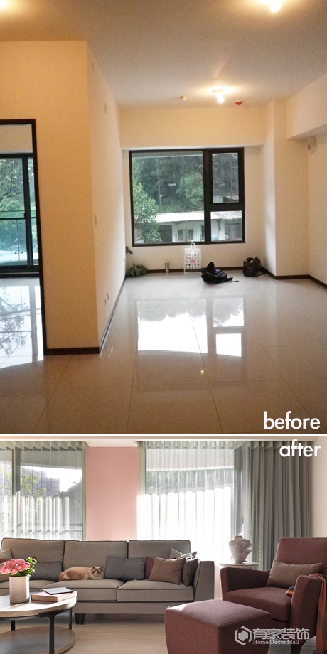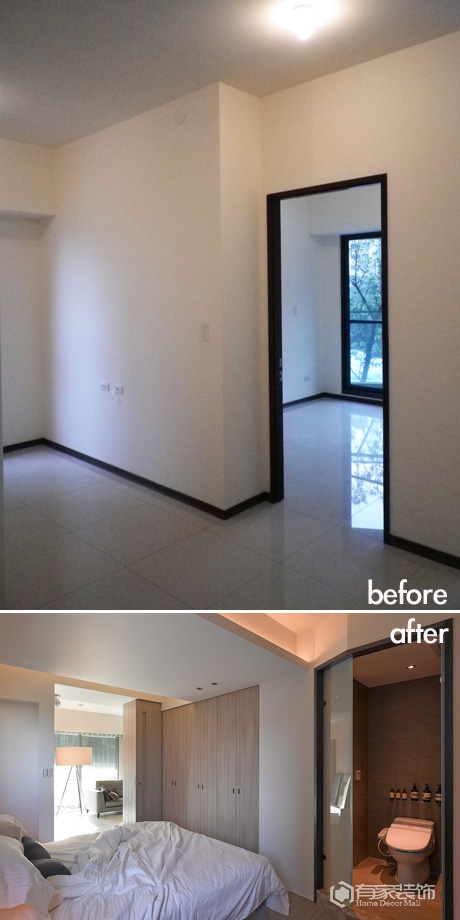 客厅与主卧一分为二,局部变更后的空间将睡房向后挪移,让我可以饱览窗外的景色。