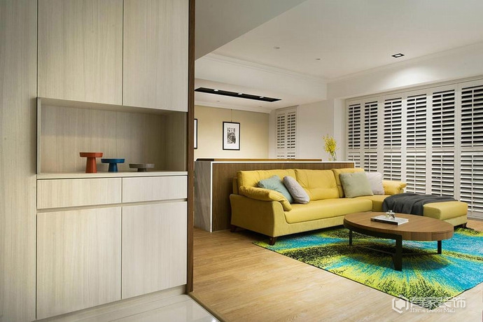 好在我家方向好,两面阳光充足,好的光线可以让空间感觉起来更宽广。设计团队尝试针对我的个人喜好,将青花蓝纳入配色计画中,如此饱满的配色方式在敞明的空间中,显得十分贵气。随着昼夜不同的光线变化,让空间充满层次感与神秘感,同时适切地调和了空间温度。
