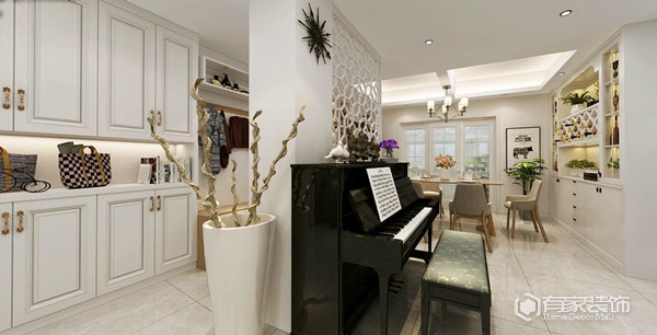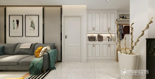 我们家其实没有传统意义上的玄关,在定方案的时候,有几家装修公司也给我们做出了设置一个玄关的建议,但是都被我否决,在我看来一个宽敞的入户其实更适合小朋友活动。入门户左边靠墙上下各打了一排柜子,加上中间近似斗柜的留空,收纳能力满满!