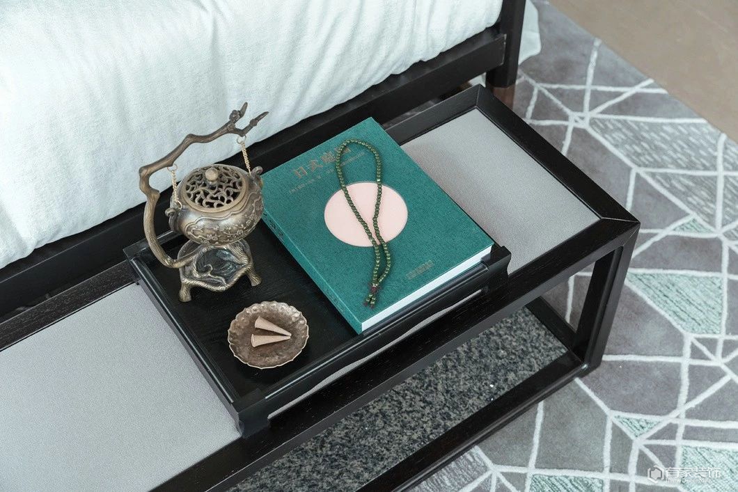 在装修期间我们沟通了很多,不枉费这段友情关系。她在每一处的设计上都十分上心,比如我家的卧室装修,当清晨一缕阳光洒入房间,照射在床架上的白色纱幔,实景光与自然光交替存在,营造错落有致的光影氛围。层叠渲染之中,给我一种梦幻及宁静的感官体验。几乎来到家中的好友,都会赞赏许久我的家,而我们夫妻就爱泡泡茶接待他们。