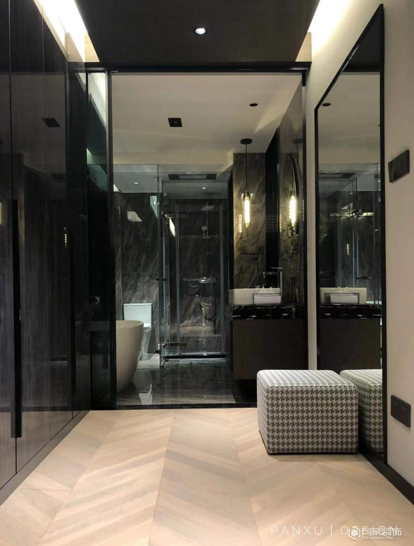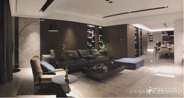 业主是一位单身年轻男性,父母市区有房,后期仅一人常住。预留三房,无特殊爱好,衣服鞋子多收纳空间要够。客厅不做任何隔断,尽量做大会客区。热爱酒店,业主原话:“想每天从柏悦醒来”。现代风格,喜欢深色木饰面,父母出于希望多设计石材。